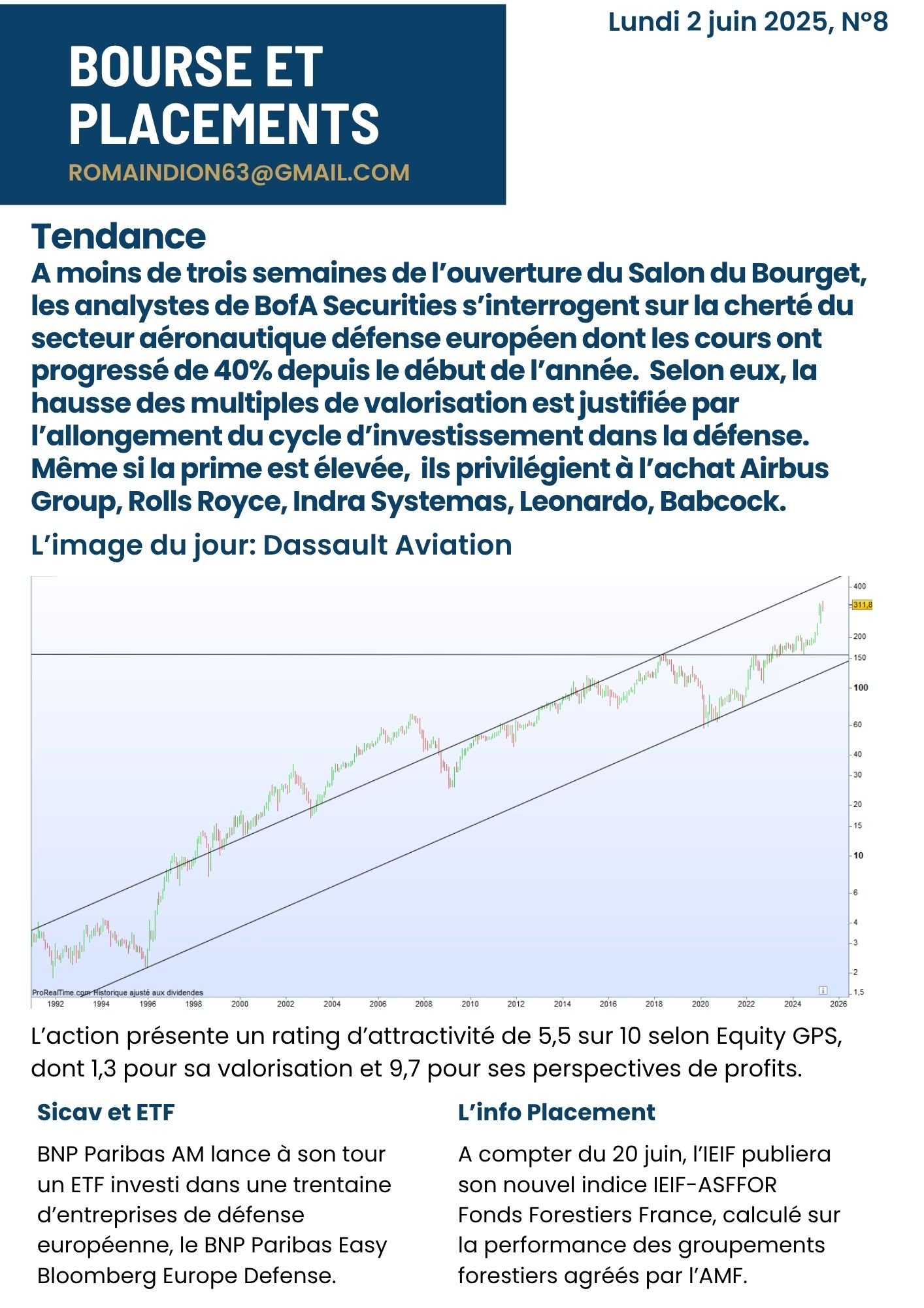 A l'approche du Salon du Bourget, les valeurs européennes de l'aéronautique défense sont proches des sommets. L'appétit pour le secteur est lié à la hausse des budgets militaires qui répondent à la menace russe et au désengagement américain.